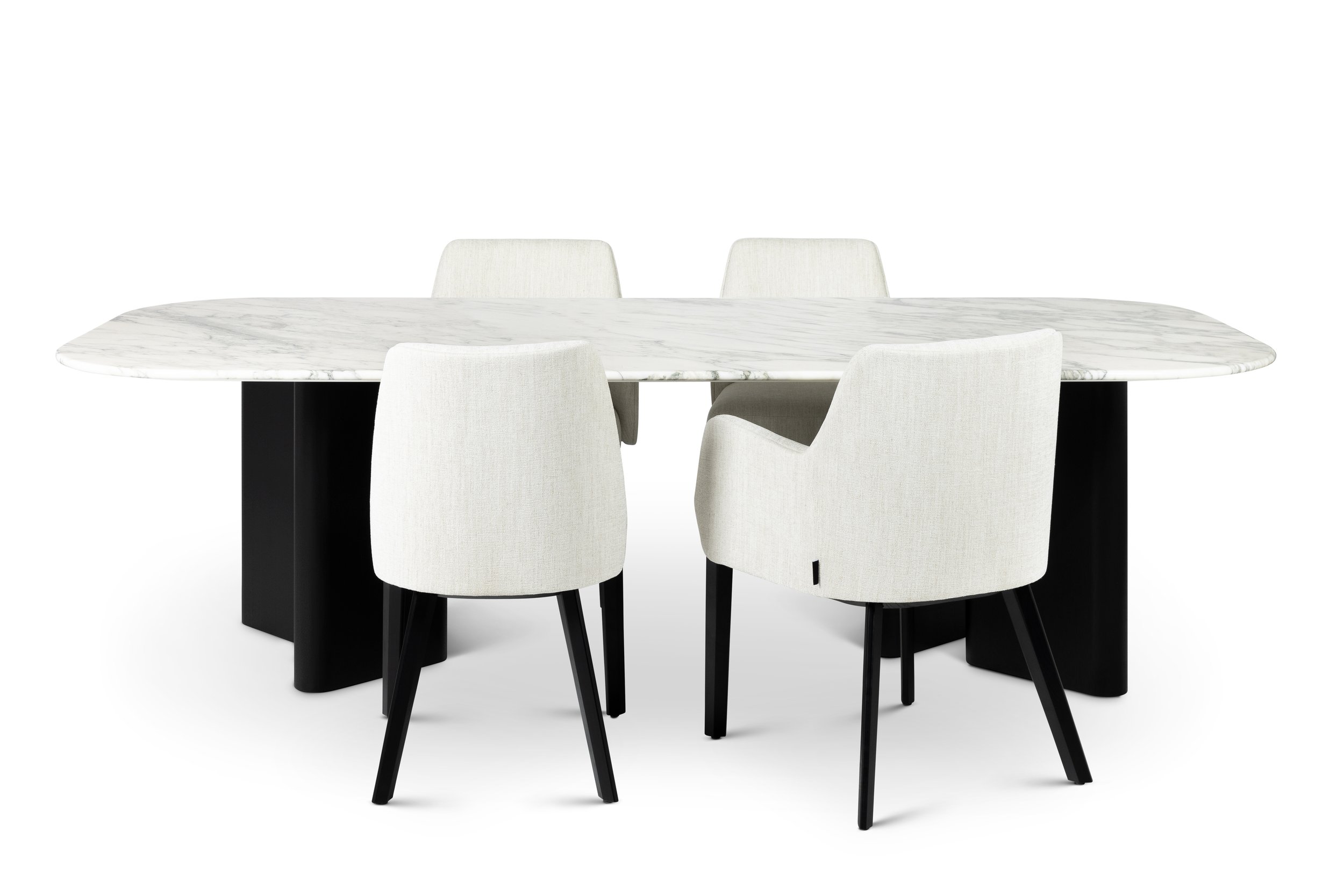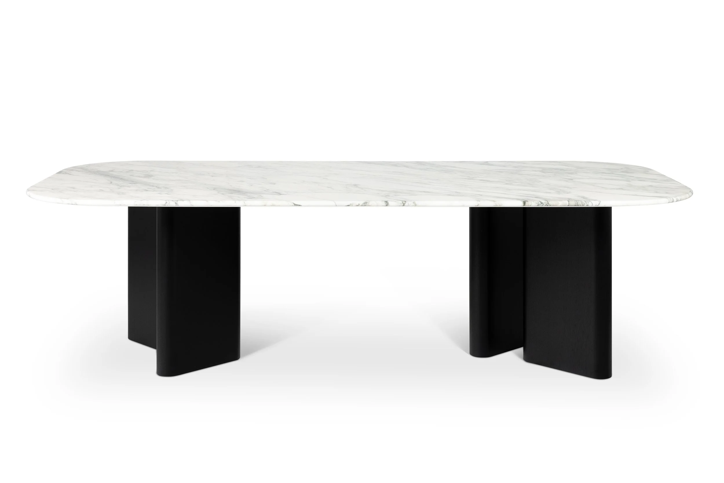 Der Alfred Esstisch besticht durch seine organische, skulpturale Ästhetik, die trotz seiner beeindruckenden Größe eine unerwartete Leichtigkeit ausstrahlt. Besonders prägend sind die sanft abgerundeten Tischbeine, die mit ihrem harmonischen Spiel der Volumina einen spannenden Kontrast zur feinen Tischplatte erzeugen.