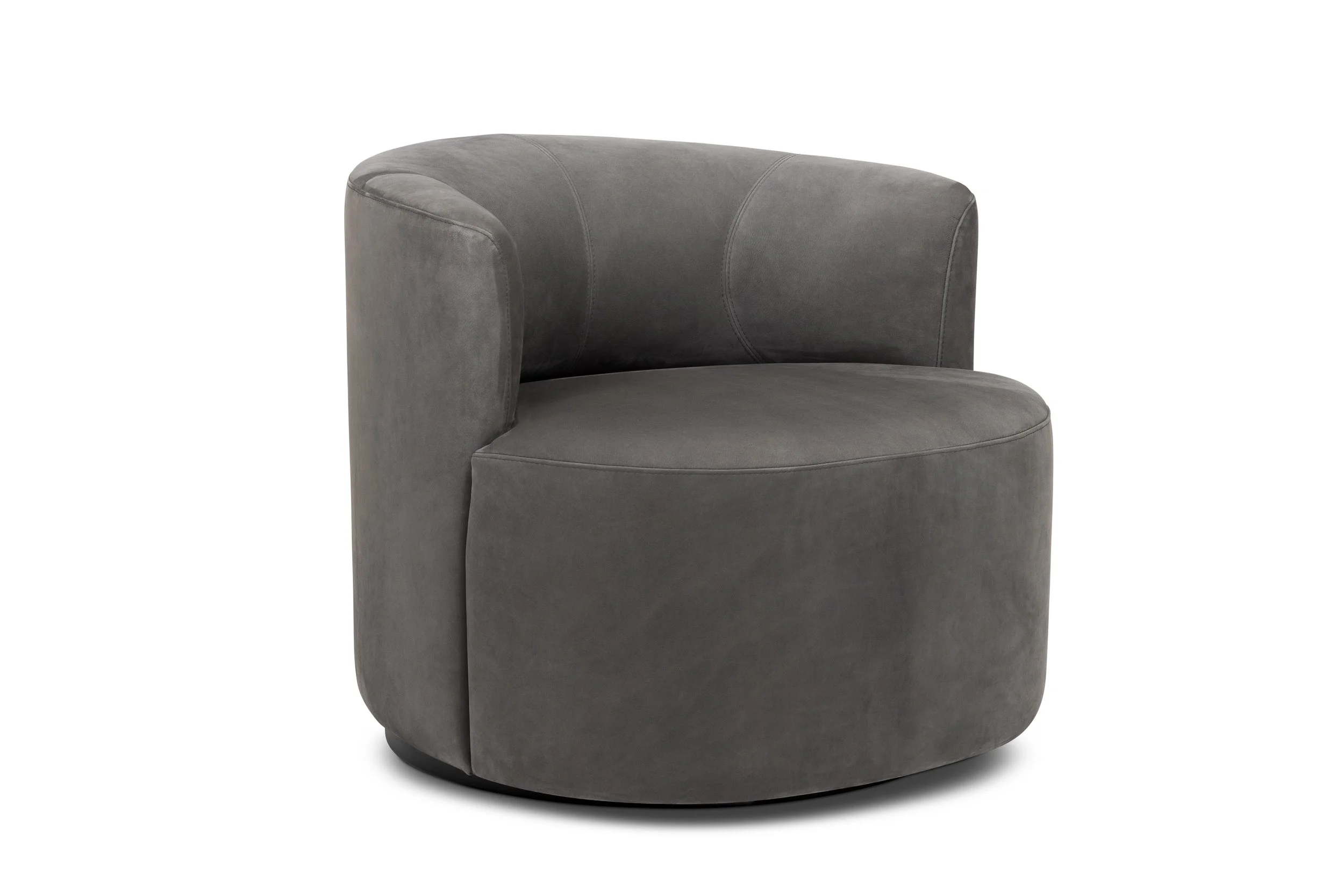 Ein kleiner Liebling für entspannte Stunden: ein runder Clubsessel in ansprechender Vollpolsterung. Seine organisch fließenden Formen sorgen für einen hohen Sitzkomfort, die im Halbrund kombinierte Arm- und Rückenlehne umschließt und stützt den Rücken wie eine liebevolle Umarmung.