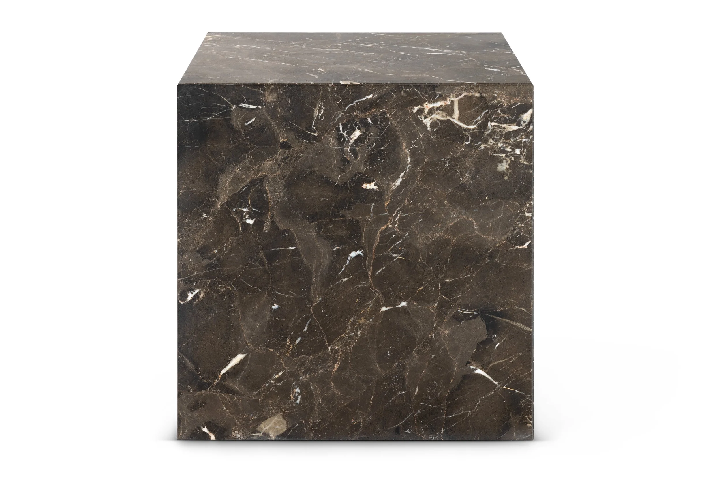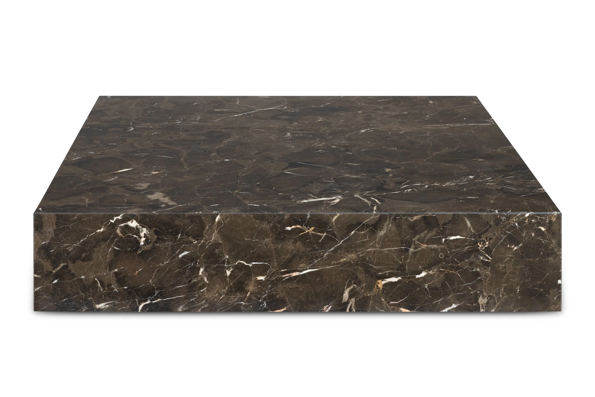 Eine optionale Metallsockel-Plattform kann den Tisch erhöhen und das Design noch verstärken. Die Wahl des Marmors beeinflusst die Atmosphäre – heller Marmor wirkt leicht und hell, dunkler Marmor sorgt für eine raffinierte, intime Stimmung.